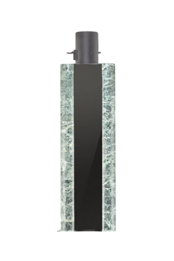 В каменной облицовке "Ламель" Нагревает воду для душевых и банных помещений.